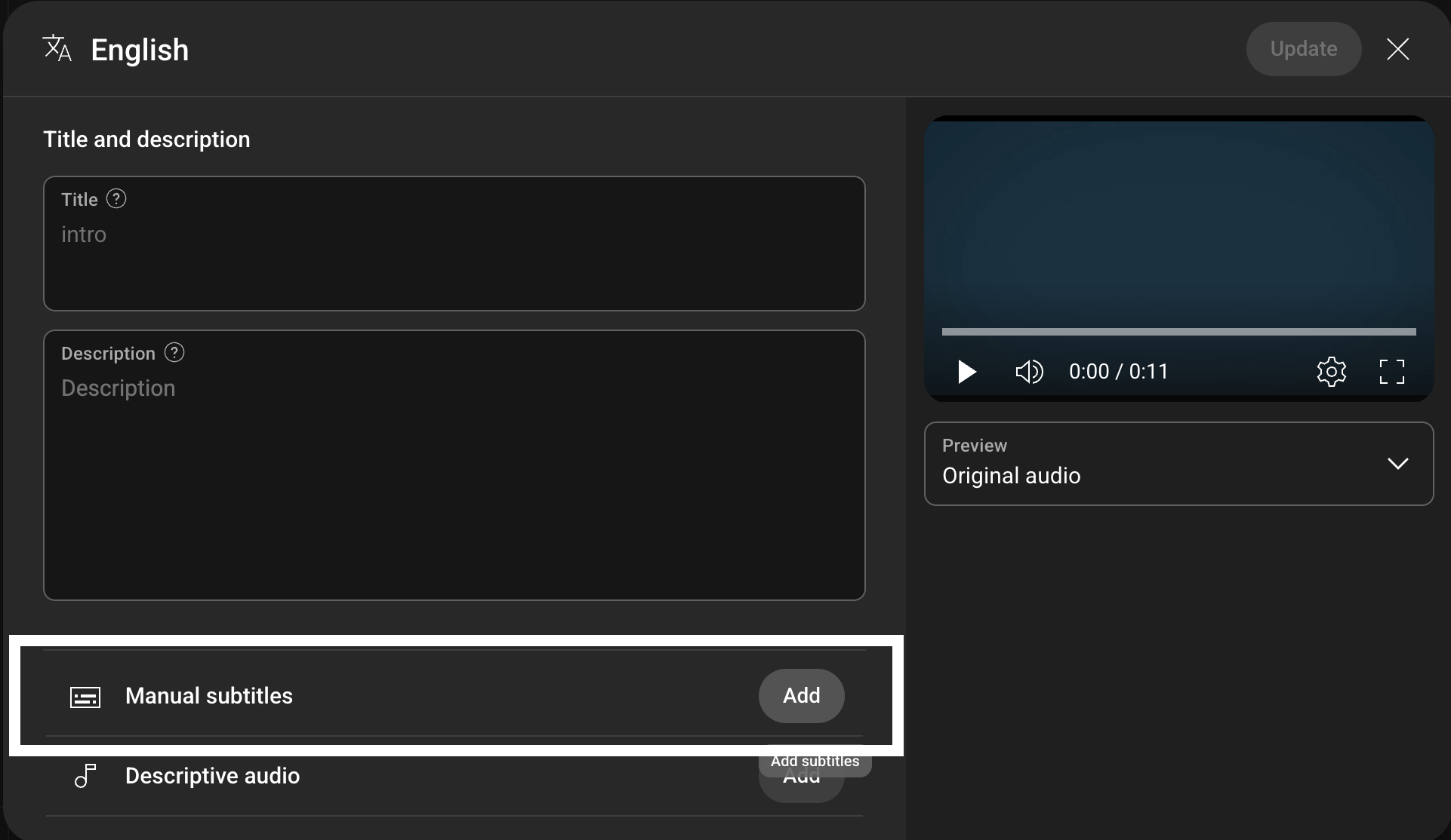 Let’s get into how you can add captions to your YouTube videos. Each option is available when you upload a new video or for existing videos.