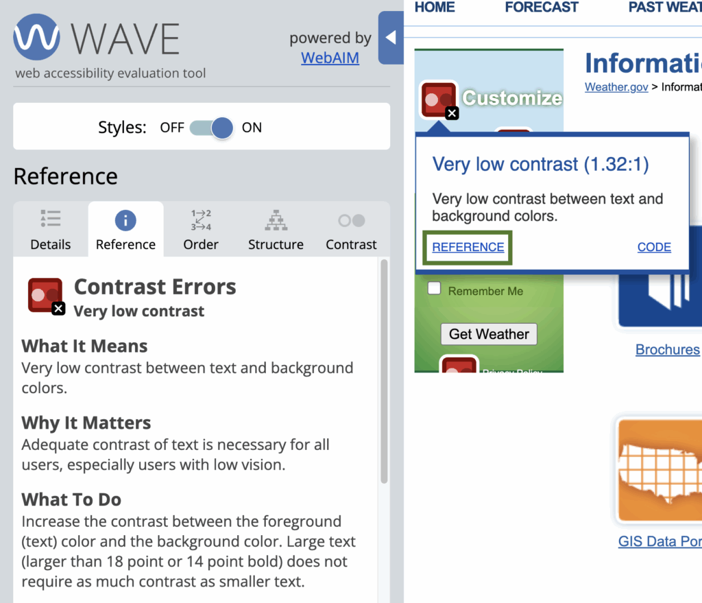 Here’s how to review contrast and color use with the WAVE extension and manually: