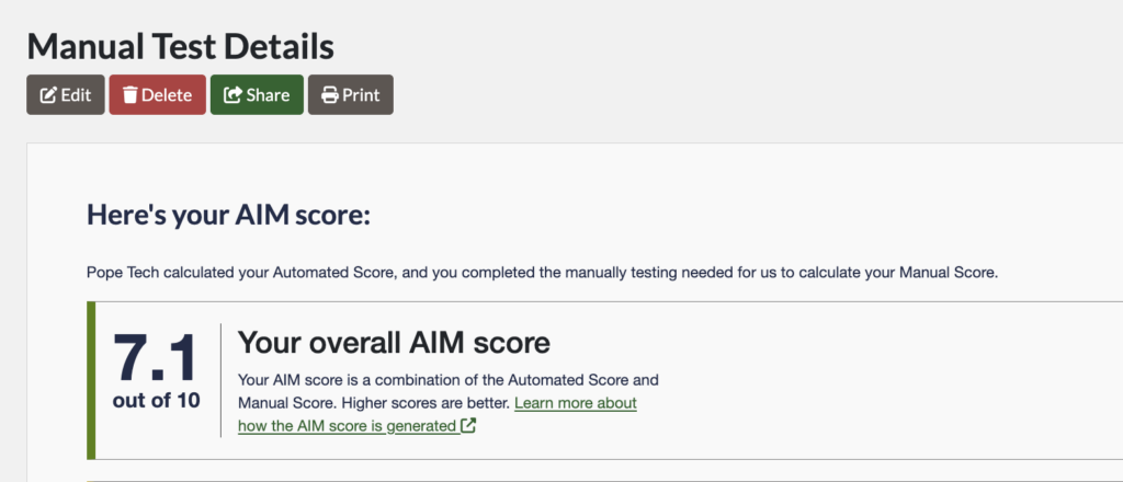 You can now easily share your AIM Score and Accessibility Progress Reports with anyone through a public link, email, or print option.